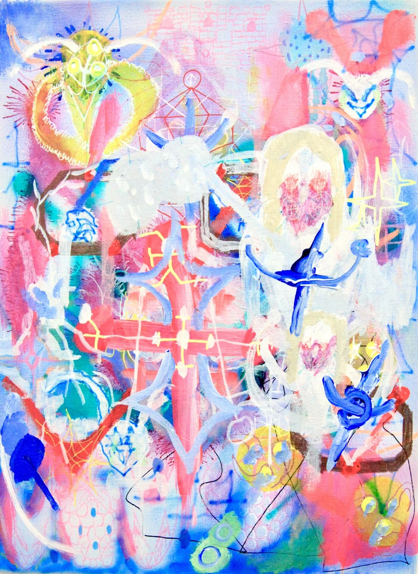 Benjamin Reichwald, Fun Chance, Acrylic, Pencil, Airbrush & Glitter on Canvas, 30cm x 40cm 2019